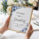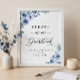 Bohemian Dusty Blue Floral Wedding Guestbook Sign Poster.