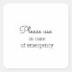 Please use in case of an Emergency Square Sticker