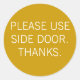 PLEASE USE SIDE DOOR. THANKS. CLASSIC ROUND STICKER