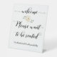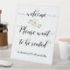 Welcome please wait to be seated black calligraphy sign. Signage by Tuxedo Royale