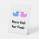 Please Wash Your Hands Blue Pink Love duck Pedestal Sign