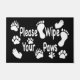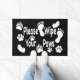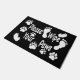 Please Wipe Your Paws Door Mat entryway doormat and home decor accessory by TheFabricSeal | Zazzle is a fun addition for your home or office with this funny design including white colour silhouettes of human feet, dog and cat paws, monkey / chimpanzee feet and bear foot prints printed on a black background colour.