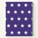 This patriotic design features the United States flag in vintage colours with the entire pledge of allegiance along the red stripes. The flag is surrounded by a border of blue and off-white with a background of white stars. The back side of the notebook is blue with white stars.