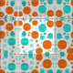 Une pléthore de cercles orange et bleu clair dans une composition moderne du milieu du siècle fascinante. Motifs circulaires d'inspiration rétro.