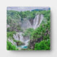 Oil painting of big waterfalls in Plitvice lakes national park, Croatia. Cascade of two big waterfalls in summer. Mountain forest waterfall landscape.