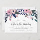 Des invitations à des fêtes d'anniversaire fleuries et chic pour les premiers anniversaires, les anniversaires de enfants ou tout âge, présentent une bordure en cascade de fleurs roses rousses avec une végétation botanique luxuriante. Personnalisez avec les détails de votre fête d'anniversaire en serif noir épais et en calligraphie.