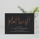 Need to change your wedding date? Notify guests with this modern and lighthearted card featuring "plot twist!" in rose gold foil handwritten lettering on a rich, soft black background. Personalize with your names and new wedding date beneath in white lettering.