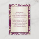 This plum and taupe damask reception card with faux ribbon and jewels matches the wedding invitation shown below. You could also customize it to be a map or directions card. If there are any other matching items you require, please email your request to niteowlstudio@gmail.com.