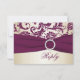 This elegant pale gold and burgundy damask reply card has a plum purple PRINTED on ribbon and crystal brooch on it that matches the wedding invitation shown below. If you require any other matching items, or would like it in another colour combination, please email niteowlstudio@gmail.com with your request. Matching items are shown below.