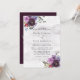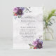 Design features a printed coloured with floral element in shades of plum and violet over eucalyptus leaves greenery and peony blooms on a purple watercolor background. Great for your wedding celebrations!