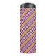 Plum and white five stripes pattern with tan thermal tumbler