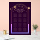 Lavande Mystique rose Soleil Lune Étoiles Astronomie Galaxie Cosmique Céleste Mariage de l'espace Carte de siège Acrylique Signe présente un arc-en-ciel coloré soleil, lune et étoiles cadre sur un arrière - plan opaque. À l'intérieur du cadre est le texte "Welcome" dans l'élégant script de calligraphie dorée et vos informations personnalisées sur le plan des sièges de réception de mariage. Personnalisez en modifiant le texte dans les zones de texte fournies. Conçu pour vous par ©2024 Evco Studio www.zazzle.com/store/evcostudio