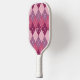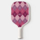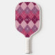 Personalized pickleball paddle Reddish Purple Plum Argyle. The argyle pattern has long been recognized as a classic design that has stood the test of time. The repeated diamond-shaped pattern evokes a sense of sophistication and elegance, adding a touch of refinement to pickleball attire and accessories. The symmetry and precision of the pattern also align with the sometimes meticulous angles and shots of the sport of pickleball. Additionally, the combination of bold and contrasting colours within the argyle design creates visual interest and makes a statement on the pickleball court. Overall, the argyle pattern as timeless charm, aesthetic appeal, and ability to add a touch of style and personality to any pickleball gear. Colourful many shades of reddish purple plum with white stitching argyle pickleball-themed gift for your pickleball-loving mom, dad, uncle, aunt, brother, sister, neighbour, grandpa, grandma, husband, wife, friend, or work colleague who won't stop talking about pickleball.