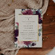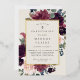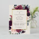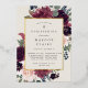 Chic floral baptism or christening invitation features a border of burgundy marsala purple, blush pink, and dusty blue flowers, with lush botanical foliage and greenery and gold foil trim. Personalize with your church ceremony and celebration details in modern lettering on a rich ivory off white background.
