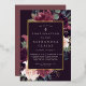 Chic floral confirmation invitation features a border of burgundy marsala purple, blush pink, and dusty blue flowers, with lush botanical foliage and greenery and gold foil trim. Personalize with your church ceremony and celebration details in modern lettering on a rich purple background.
