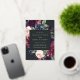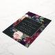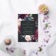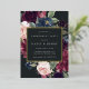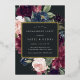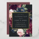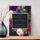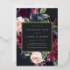 Our Plum Blossom engagement party invitation frames your party details with an elegant square border of lush watercolor foliage and flowers in blush pink, burgundy plum purple and dusty blue, with real gold foil trim on a rich charcoal background.