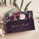 Our Plum Blossom bridal shower invitation frames your shower details with a top border of lush watercolor foliage and flowers in blush pink, burgundy plum purple and dusty blue, on a rich plum background that's perfect for fall or winter events.
