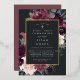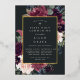 Chic floral first holy communion invitation features a border of burgundy marsala purple, blush pink, and dusty blue flowers, with lush botanical foliage and greenery and gold foil trim. Personalize with your church ceremony and celebration details in modern lettering on a rich charcoal background.