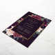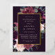 Chic floral rehearsal dinner invitation features a border of burgundy marsala purple, blush pink, and dusty blue flowers, with lush botanical foliage and greenery and gold foil trim. Personalize with your wedding ceremony rehearsal and dinner details in modern lettering on a rich dark purple background.