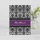 Custom Bat Mitzvah party invitations in elegant dark purple, black and white classic floral damask pattern. Add your name and party details for a unique and stylish Bat Mitzvah party invitation.