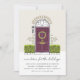 Charming holiday housewarming party invitation features a sketched plum purple door illustration flanked with green bushes and a Christmas wreath, with "new home for the holidays" in chic handwritten script lettering. Personalize with your celebration details beneath.