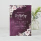 Painted watercolor botanical floral in burgundy red, blush pink and navy blue colour on moody plum purple watercolor background, modern and elegant, great invitations for modern birthday party.
