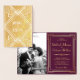 Invitation vos invités avec cette élégante faire-part de mariage pliée avec un cadre d'art déco en faux or à l'intérieur et un cadre d'art déco en feuille d'or véritable avec des noms de mariés et de mariés à l'extérieur. Ajoutez simplement les détails de votre événement sur ce modèle facile à utiliser et ornez cette carte avec votre photo préférée pour en faire une invitation unique.