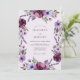 This design features a lush arrangement of watercolor florals in varying shades of purple and mauve. Deep plum anemones with dark centers anchor the visual interest, accented by slender lavender sprigs and dainty lilac blossoms. The soft, airy composition creates a romantic and sophisticated mood for a seasonal gathering.