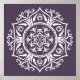 This white mandala sits on a plum background. The colours are very sophisticated. Part of the Rosenn Mandala Collection.