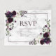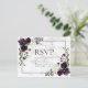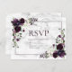 Moderne et tendance, cette carte postale RSVP faire-part de mariage présente une aquarelle de verdure eucalyptus et des arrangements floraux prune violet, avec une texture imitation marbre blanc, avec "RSVP" dans une couleur prune assortie. Fait partie d'un ensemble de mariages correspondant. Copyright Invitations élégants. Tous droits réservés.