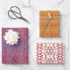 Sheet wrapping paper with a trio of designs, great for wrapping, creating book covers, or lining shelves and drawers, colours are a mix of plum, pink, and mustard gold background colours can be changed to any colour of your choice.