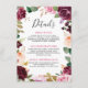 Elegant moody rustic purple plum spring floral botanical wedding details card featuring a bouquet of soft pastel watercolor roses and peonies in shades of burgundy, marsala, wine red, purple, plum, blush pink, peach and cream with lush green botanical leaves and eucalyptus leaves. A modern design choice that is perfect for spring and summer purple plum blush pink themed weddings.Please find more matching designs and variations from my "blissweddingpaperie" store. And feel free to contact me for further customization or matching items.