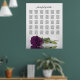 Cette belle carte de sièges mariages présente l'image d'un rose à long tige de prune violet ou d'aubergine couché sur son côté réfléchissant dans l'eau avec des vagues et des ondulations. Le titre dit "s'il vous plaît trouvez votre table" dans élégante calligraphie de script en dentelle. Il y a de la place pour les noms des couples et la date du mariage. Ce tableau a des affectations de table pour 300 invités dans un arrangement traditionnel de 10 personnes par table.