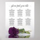 Cet élégant tableau de sièges de mariage a assigné des tables pour 60 invités à dix personnes par table. Il présente une belle conception avec un rose couleur prune violet ou aubergine réfléchissant dans l'eau avec des vagues et des ondulations. Le titre de calligraphie du script lacy dit "s'il vous plaît trouvez votre table" Il y a de l'espace pour les noms du couple mariage ainsi que la date du mariage.