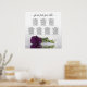 This 7 table wedding seating chart is simple, elegant, romantic and chic. The design features a beautiful plum purple or eggplant coloured rose reflecting in water with waves and ripples and a fancy script calligraphy title reading "please find your table." There is space for the names of the couple and the wedding date. This seating chart has table assignments for 70 guests - 10 people at each table. Great way to make your reception beautiful while helping your guests find the right seat.