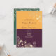 Elegant, modern, jewel tones, plum purple, yellow and emerald green wedding invitation with vintage gold floral lace and simple calligraphy.