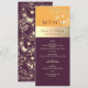 Simple, calligraphy, modern, elegant, jewel tones, plum purple wedding menu with gilded gold floral lace.