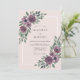 This design features a sophisticated palette of deep plum and muted mauve watercolors set against a soft blush backdrop. Elegant clusters of lush roses and delicate anemones are paired with sage green leafy foliage for a romantic aesthetic. The artwork evokes a sense of timeless elegance and natural beauty.