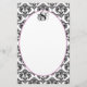 Black and White Vintage Damask Purple Plum Borders Stationery