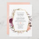 Trendy floral wedding invite with gold geometric frame designed to be quickly and easily customized to your event specifics.