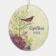 Plum Vintage Bird Christmas Couples Photo Ornament