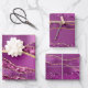 Un trio de feuilles de papier d'emballage avec un éclatant; glam et design élégant comprenant de faux or et différentes nuances de bandes de parties scintillant prune violet posé horizontalement l'un sur l'autre qui donne l'illusion d'un marbre; granit ou plateau agate. Ce design est idéal pour tout anniversaire spécial de mariage, anniversaire, événement officiel ou fête.