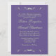 Silver scroll with matching text. This is a popular colour is called Ultraviolet and this solid simple look is nice for an evening or winter wedding. Put the first names of the Bride and Groom on one side giving your invitations a less formal feel. On the other side the pertinent wedding information adds a classic flair. You can easily change the text. If you need any help or would like something different please message me. I am available for requests. When doing your invitations triple check all your spelling and dates.