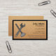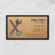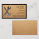 This business card for plumbers features an illustration of an adjustable wrench and a plunger, set against tan craft paper. Your name, phone, address, website and email address is presented on the front of the card so your customer's can always reach you.