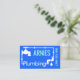 An all blue cover features a white faucet-pipe frame design that is leaking water.