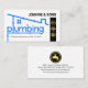 At the top lies the business name alongside a set of gold plumbing icons that is placed inside a vertical black stripe layer. Just underneath the "plumbing" signage is a slogan caption which you can change.