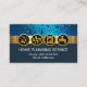 Overleaf, in a white cover, on the left is a dripping blue faucet design. Card details are over on the right with a home tools logo you can use, at the top. This is followed by the business name, its contact details and a slogan caption option which you can change.