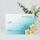 Belle carte de réponse RSVP pour un mariage de destination "Plage de Plumeria". Pour les questions et les demandes, envoyez un email : cheryl@cheryldanielsart.com. Des invitations de mariage assorties, des cartes "save the date", des enveloppes, des timbres, des autocollants ronds et carrés, des magnets et plus sont disponibles. "Plage de Plumeria" est une création originale de Cheryl Daniels © 2013.