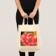 The printing came out very well, better than I had anticipated. The natural color fabric is sturdy with strong seams and comfortable handles. This tote fits easily over my shoulder. As it is filled, the bottom flattens out--very cool! I would buy this product again. This grocery tote holds a lot of groceries! The image quality was very good. The colors were a little darker than I had expected. The darkness may have been due to printing on a natural color fabric rather than on white. The cat design is attractively centered on the tote. The spirit of the design is very lively, just as it appears on the Zazzle website.