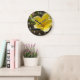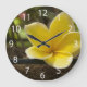 Beautiful round wall clock of yellow bloom of exotic plumeria flower in hanging basket of greenhouse. Click on "Choose Your Style" to select a different size. Design also available on square shape.